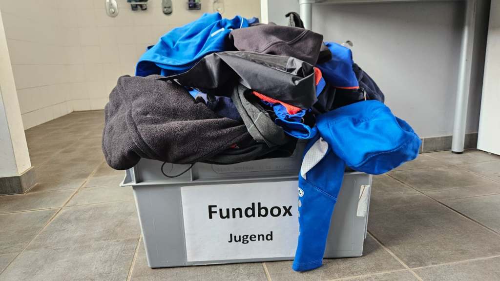 Seit der Rückkehr auf den Sportplatz ist unsere Fundbox fast täglich angewachsen. Bitte schaut vorbei und holt euch eure verlorenen Sachen zurück!