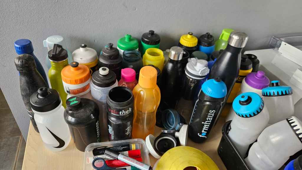 Auf dem Tisch oben stehen alle gefundenen Trinkflaschen. Bitte schaut vor oder nach den kommenden Trainings die Fundsachen durch! Die Fundbox ist schon überfüllt – viele Sachen warten auf ihren Besitzer!