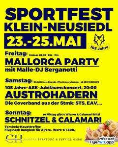 In zwei Wochen findet das Sportlerfest des ASK Klein-Neusiedl statt, mit Musik, kulinarischen Köstlichkeiten und Fußballspielen aller Jugendteams. Helfende Hände sind für die Organisation willkommen.